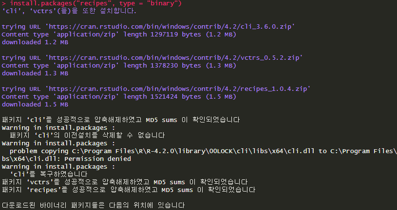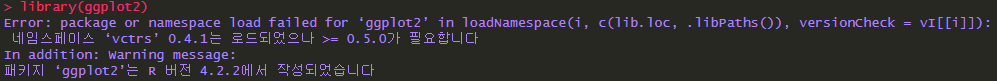 네임스페이스 ‘vctrs’ 0.4.1는 로드되었으나 >= 0.5.0가 필요합니다